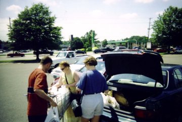 Loading up Jessie's car at the supermarket. Photo by Graham