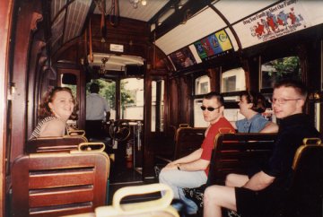 Taking the trolley car up Main Street. Photo by Heather