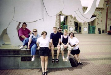 At the zoo. L to R: Jason, DJ, Jessie, Graham, Oswald, Pete, Heather. Photo by Jani, with Graham's camera