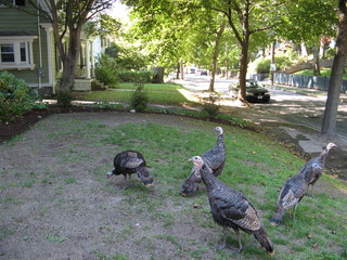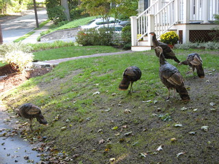 Some of Newton's wild turkeys visiting our neighbor's yard