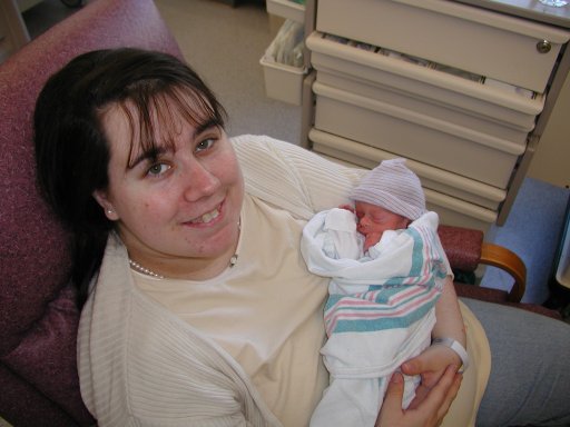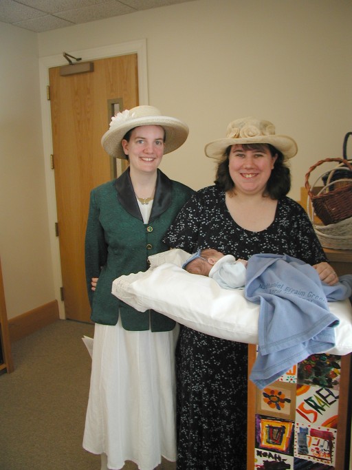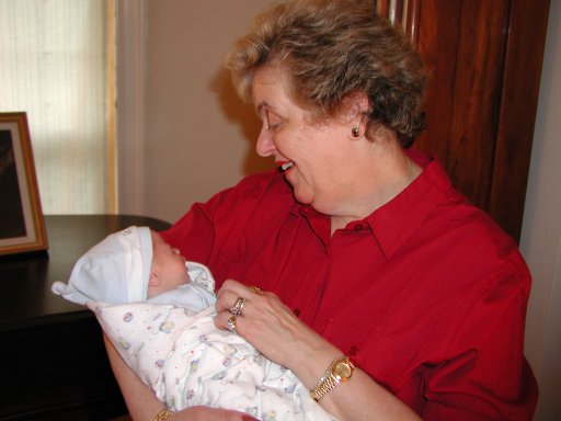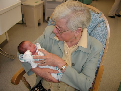 Shavuot with Oma and Poppy: Oma (Andrew's mother) holds Nathaniel. (20010527)