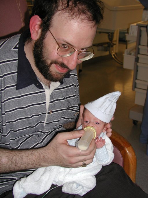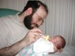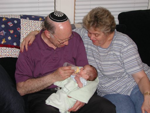 Shavuot with Oma and Poppy: Poppy (Andrew's father) feeds Nathaniel while Oma looks on. (20010529)