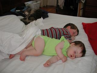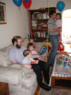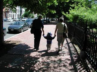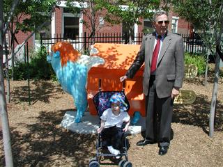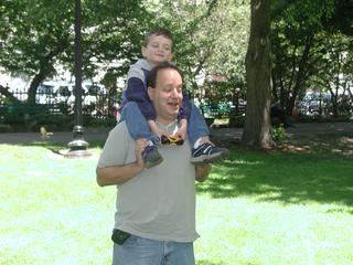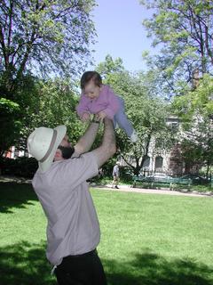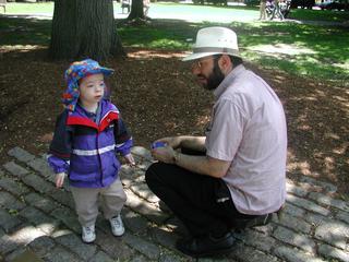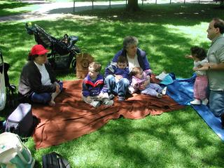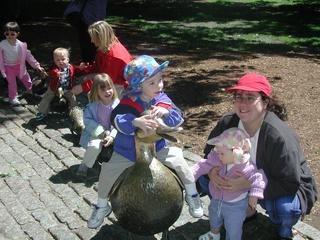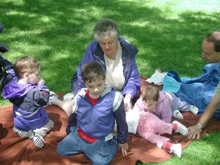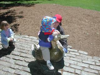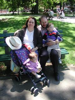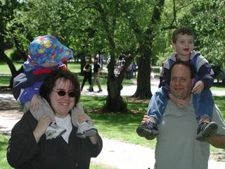 Tani and Momma, with Cousin Josh and Uncle Jonathan, Public Garden, May 30 (20040530)