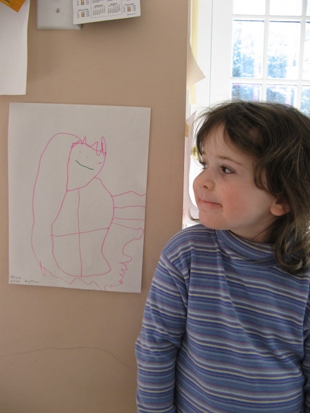 Alissa and her latest creation: "Big mouse!" (Her most representational artwork yet.) (20070203)